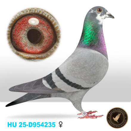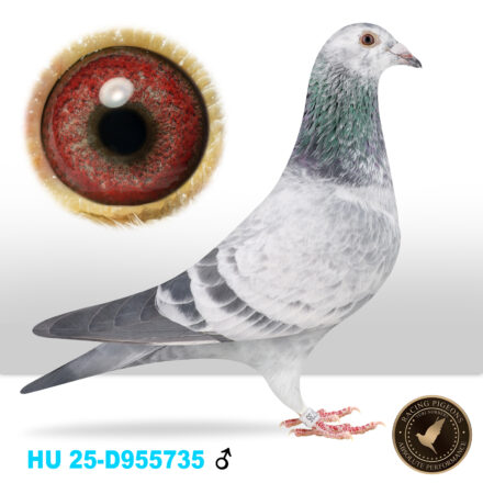 HU 25-D955735Tűri Norbert. Father: Original Romein-Klein. Quicksilver line: Quicksilver: 1. Strombeek 5.614p. 1. Duffel 5.367p. Starlet: 1. Roye (Ace pigeon) 6.051p. 1. Quievrain 4.566p. Fastest 13.150p. 1. Quievrain 4.021p. Fastest 12.353p. Mother: Original Van Den Brande Gebr. Inbred Goed Grijs. Goed Grijs: Superbreederster + winner 7x1. prize 1. NPO Laon 6.371p. 1. Duffel 5.821p. 1. Heusden-Z. 2.775p. 2. fastest 11.336p.