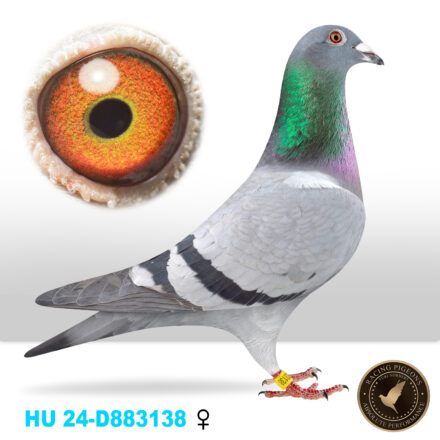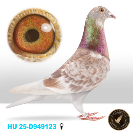 Tűri Norbert. Blood line from: Daniel: 1. NAT Ace Sprint 2019 1./ 1.972p. 1./ 989p. 1./ 634p. 1./ 872p. Witkopje: Fantastic 2x 1. massive winner 1. Quievrain 2,783 birds/ 2. prov. 10,538 birds, 1. Boxtel 2,510 birds/ 3. prov. 7,590 birds. Rubbellos: 1. final SA Million Dollar race 2012. Sylt Orpheus: 2. final SA Million Dollar race 2012 One Loft Kaasboer: Bruder Von: DV 04087-13-209 1./ 1.388 T. 500 Km Finale Hebei, China '13 1.131 m/min, 10 Min. voraus Preisgeld: 72.000,-€