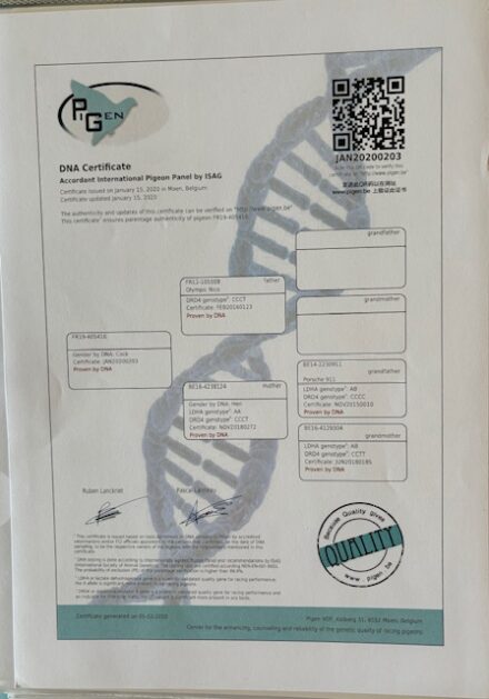 Norbert Tűri Blood line from: Little Star: 1. Nat. Acepigeon GMD yearlings KBDB 2015 Luc: 1st Nat. Argenton 12.446 p. Queen James: 5th Nat. Ace KBDB LD 2017 Prima Dora: 1st Nat. Bourges 18.864 p. Gladiator: 2nd Olympic pigeon Porto 2005, 3. Nat. Acepigeon KBDB 2004 New Freddy: 1st Nat.Acepigeon KBDB Gr MD 2010 Super Racer 261: 1. 4.379p. 319 km 1. 4.016p. 543 km 1. 2.345p. 261 km 1. 2.111p. 370 km 1. 1.934p. 169 km 1. 1.906p. 262 km 1. 1.491p. 342 km 1. 1.386p. 366 km