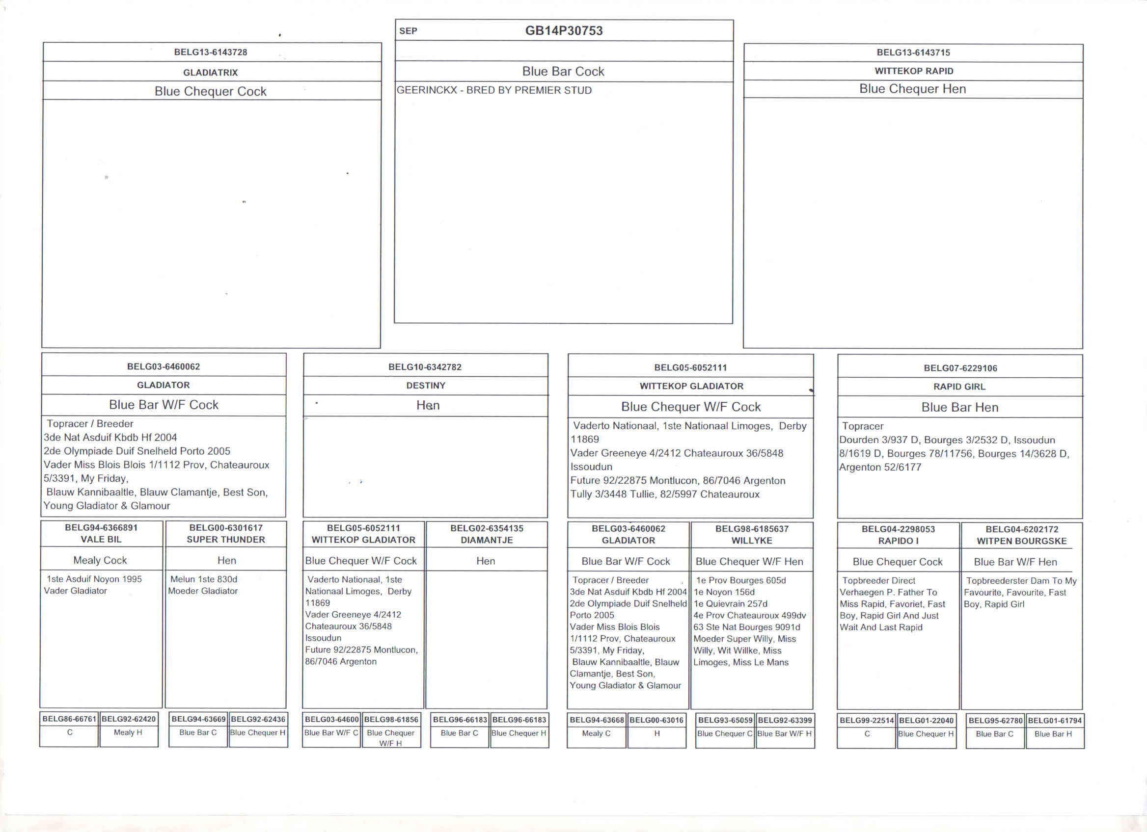 Tűri Norbert. Father: Inbred Wittekop Sylvester. Wittekop Sylvester: Worldclass Founder for Geerinckx Offspring Won: At Least 15x1.Prov 1. I.Prov 2.576 bp. 1. Noyon 502p. 1. Provincial 329p. 1. Toury 307 bp. 2. Nat. Lim 17.498p. 2. Nat. Argen 5.208p. 2. Provincial 1.800p. 2. Nat.Ace bird BV Mother: Inbred Gladiator. Granddaughter to Gladiator: 2. Olympic Ace Porto 3. Nat. Ace KBDB 2004