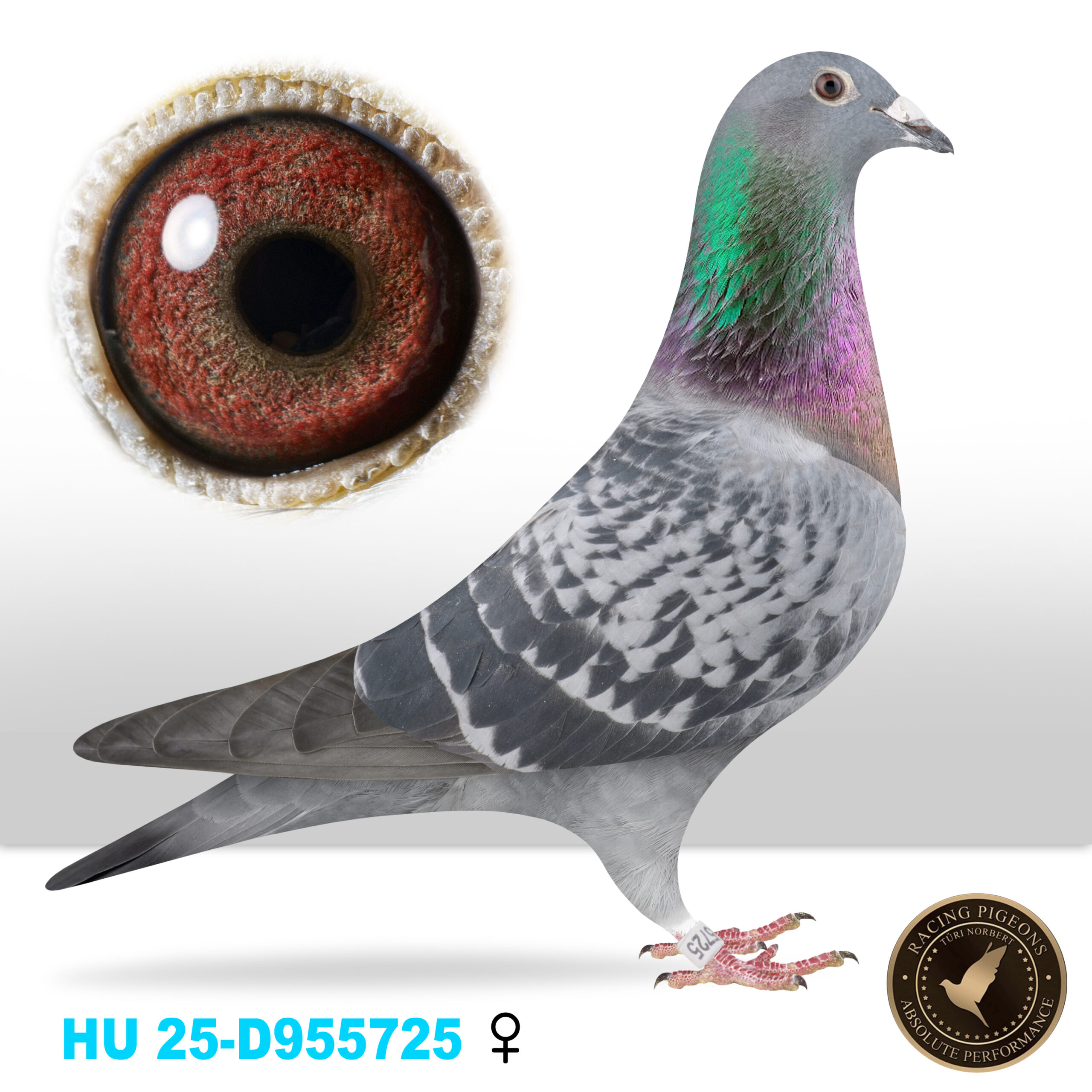 Tűri Norbert. Checker. Precious Jan line, supreme inbred to Kannibaal van Dyck. Bred from De Jan, founding breeder of Adrie Kors. Father to Miss Maniwan: 1. Nat. racing hen WHZB '07 1.St. Quentin 1,156 p/4.NPO 12,155 p Father to Adrie Kors icon De Diamant 7. Nat. acebird WHZB 2010 1. NPO Troyes 7,543 p 1. prov. Arras 6,648 p 1. Vilvoorde 1,350 p Replay line. Replay offspings won: 1. NPO Mantes la Jolie 31,758 p 1. NPO Chantilly 30,074 p 1. NPO Creil 26,489 p Talent 813 line. Inbreed Goed Rood = Flew as young + yearlings 36 prizes of which 19 prizes per 20 (including 2/617, 6/1576, 6/1338, 7/1471, 7/1174, 4/595, 2/243, 5/415)